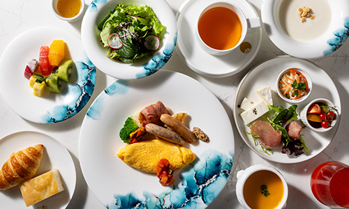 彩り豊かな料理が並び、優雅な一日の始まりを演出するブレックファスト